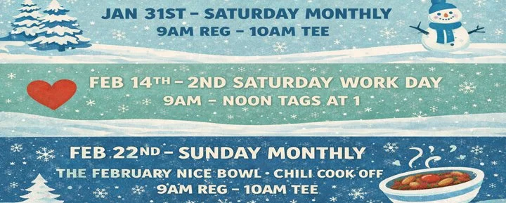 Join us on the Second Saturday of each month for volunteer Course Maintenance, 9am – 12pm. Tags follow at 1pm.