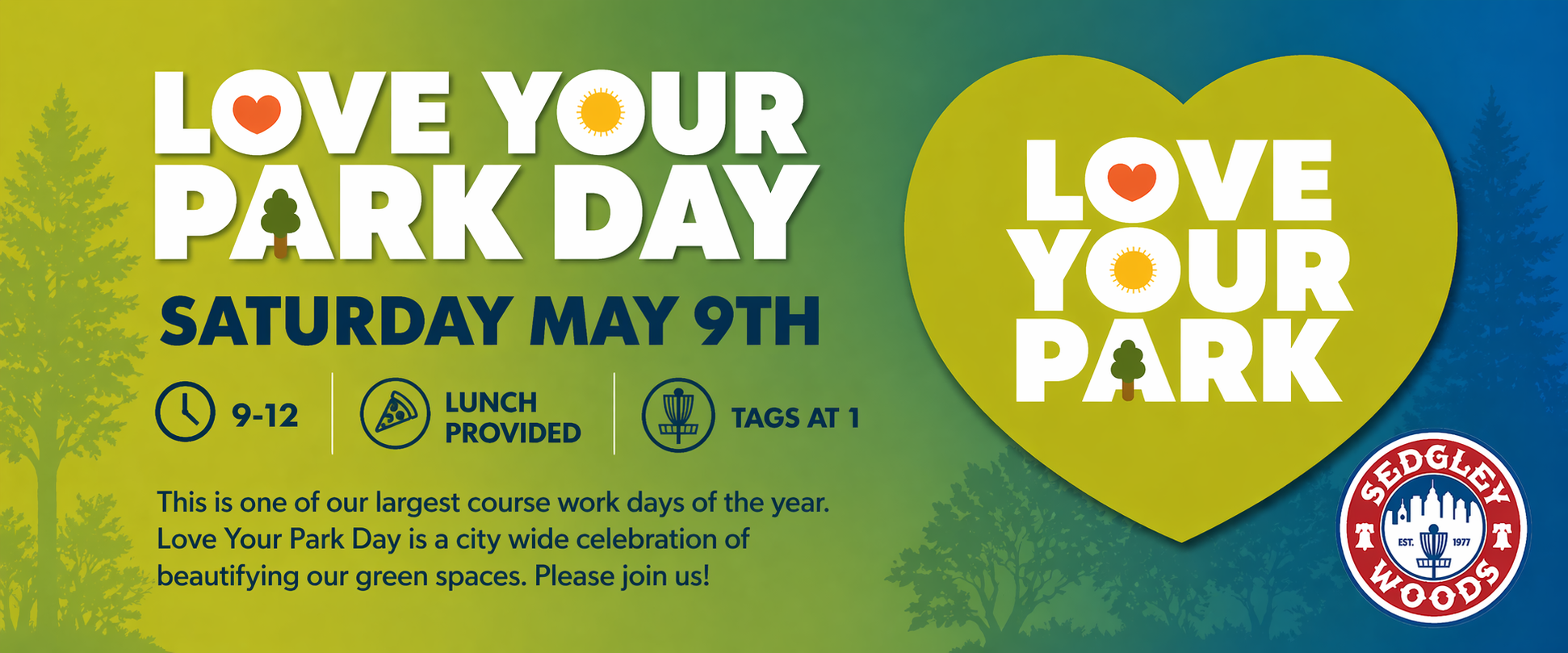 Three times a week the Friends of Sedgley Woods play organized rounds known as Tags year round. Tag rounds are held Thursday 5 Hours before sunset (12 noon during daylight savings) (doubles happen 2 hours before sunset Thursdays), Saturday 11am (except 1pm for 2nd Saturday workdays), and Sundays 11 am.