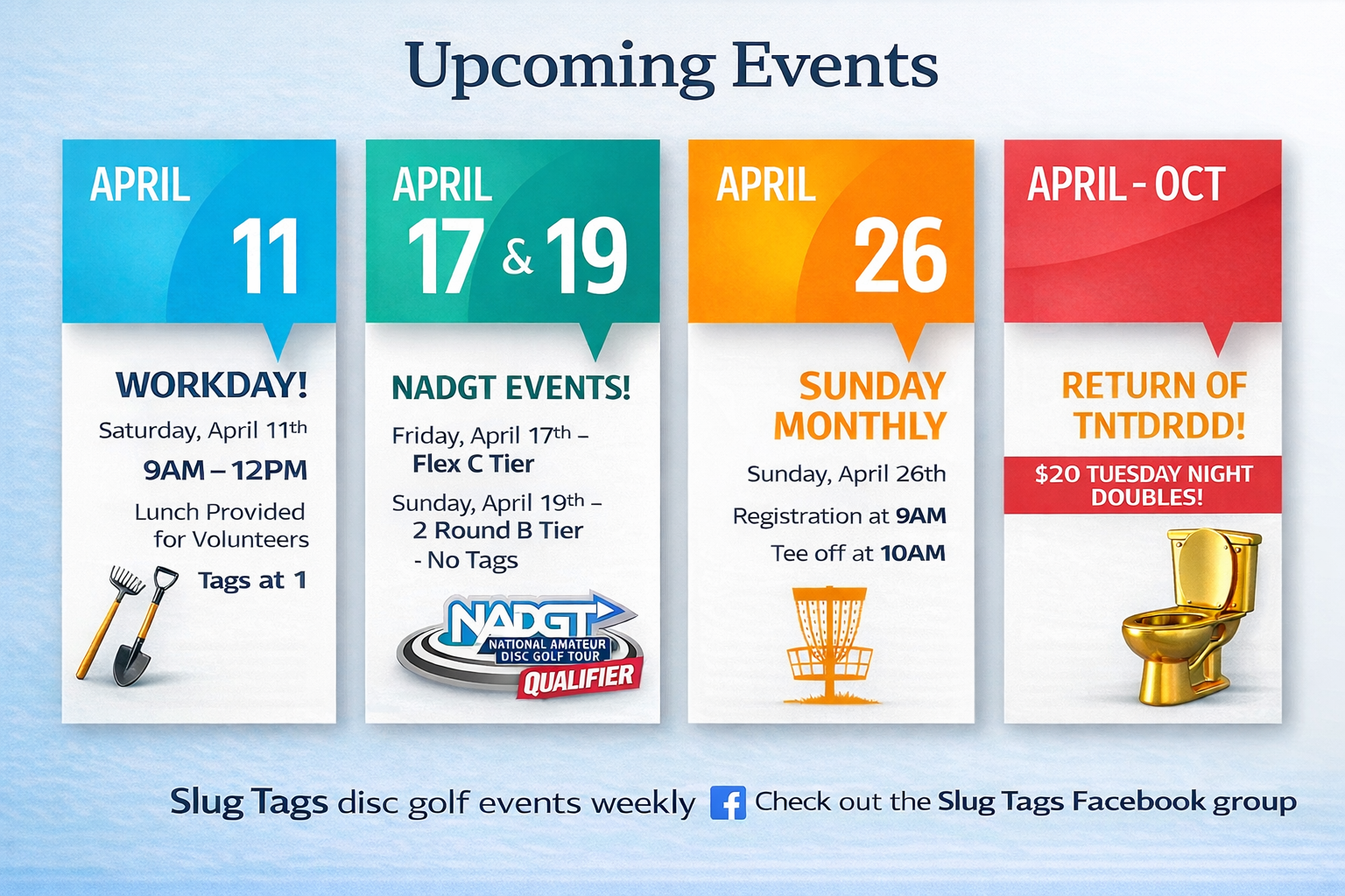 Each year we run a variety of disc golf tournaments, from casual throwback events like The Big Lid to more serious PDGA sanctioned tournaments.
